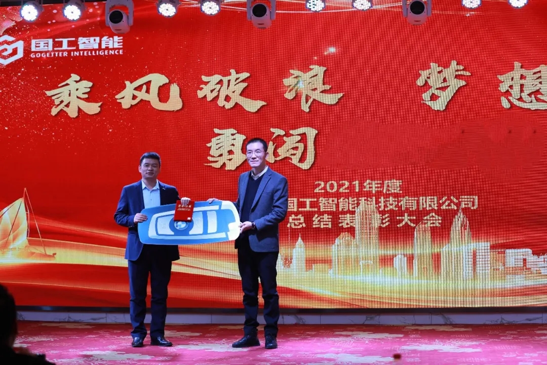 銷售業績比去年同期增長160%,是國工智能在2021年交出的一份滿意答卷,這個成績離不開每一位員工的辛勤耕耘。致辭結束后,公司領導對員工代表分別頒發了年度銷售冠軍獎、百日沖刺售前支持獎、年度優秀員工獎等,以資鼓勵。